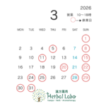 2026年3月の営業日 漢方相談ご予約可能時間 漢方薬局 Herbal Laboの営業時間は、10~… 続きを読む: 営業日、漢方相談空き状況(2026年3月) - 漢方相談例23『緊張でパニックになる』