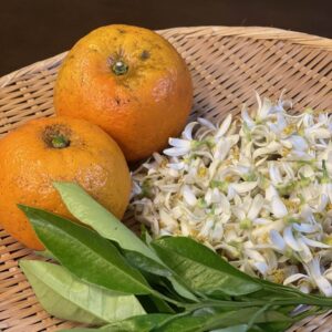 先日、佐賀県の山辺果樹園さんからビターオレンジの花、葉、果実を取り寄せました。