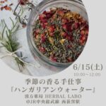 2024-05-23 / 最終更新日時 : 2025-09-29 herbal labo 01.お知らせ 【募集】6/15季節の香る手仕事『ハンガリアンウォーター』 毎年初夏の時期に開催しているハンガリアンウォーターのワークショップを、今年も行います。 たくさんのハーブを用いて、ハーブの力を閉じ込めた化粧水の素を作ります🥰 ハーブ酒としても飲めるレシピです。 以前にレッスンでお作りに […]